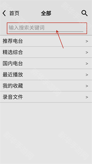 2、还可以自行搜索各种不同的电台,只需在搜索栏输入关键字即可。