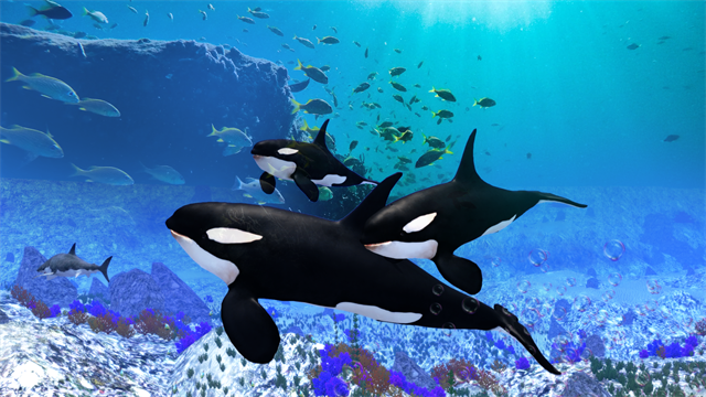 《虎鲸模拟器》这是一款模拟类型的游戏,游戏由“Wild Life”工作室出品,玩家能在这款游戏中体验成为一条虎鲸的乐趣,你可以在广袤的大海中自由探索,通过鲸鱼的过滤大嘴吸入小鱼、小虾等食物来保持你的饱食度,并且在一定的游泳过程中,你需要及时的浮出水面进行换气,体验真实虎鲸的生活。游戏中还有各种特殊的地形,甚至人类的船只,你可以对着他们喷气,非常有趣。