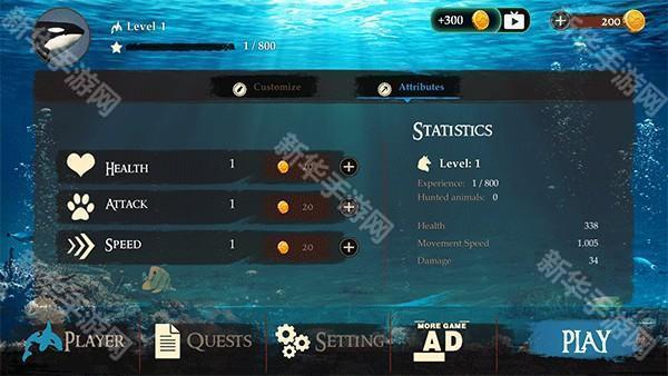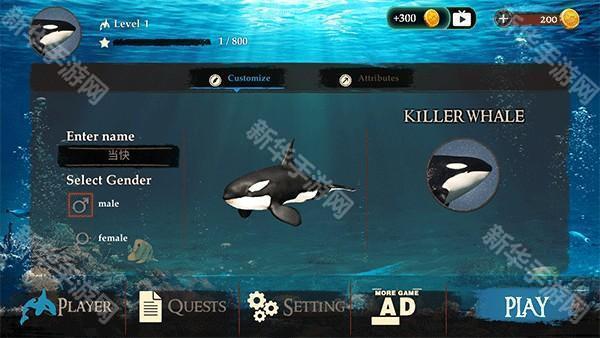 2、用金币能增加属性点,可以看到虎鲸的详细数据,点击play就可以开始游玩了