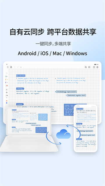 纸张无限边界,想到哪,写到哪,不再限制在A4纸的世界里,可插入图片,文本,gif动图, pdf等素材,自由度高:每个笔的颜色和长度都可以设置,可以随便更改背景模板,可以自己设置背景和模板,享做笔记支持软件内双开笔记, 双开同一个笔记, 多标签页,可以选择在页面之前插入页面。