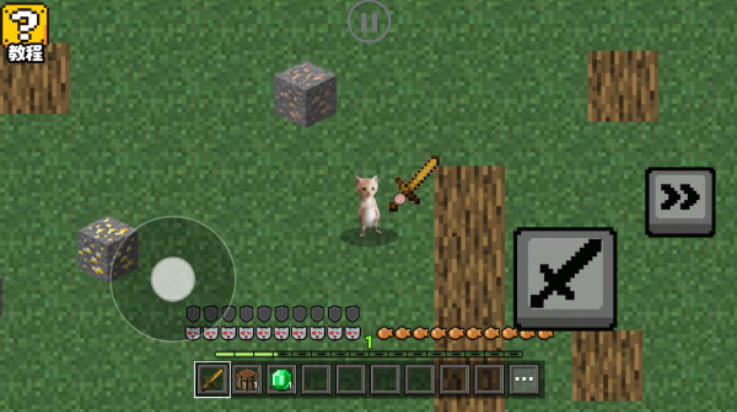 3.进入随机生成的像素世界后,从剑、锤子、斧头等12种基本武器中选择一种方便的武器。
