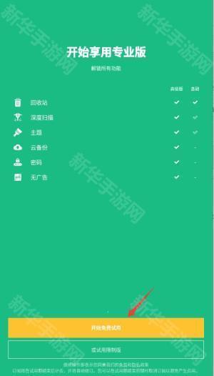 1、首次启动应用时,点击"开始免费试用"按钮进入主功能界面。