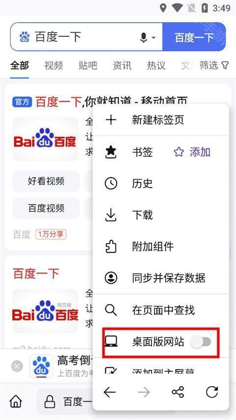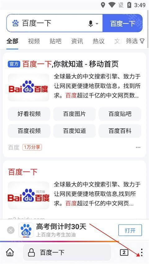 1、 在搜索处搜索自己的需求,这里以百度为例;