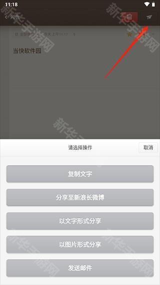3、点击进入便签,点击右上角按钮,可将便签分享至新浪微博