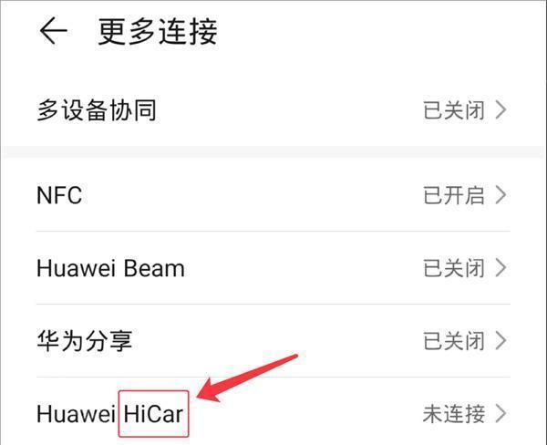 打开手机“设置”、“更多连接”,如果有“Huawei HiCar”或者“HiCar智行”,即说明支持HiCar手机互联功能,如下图: