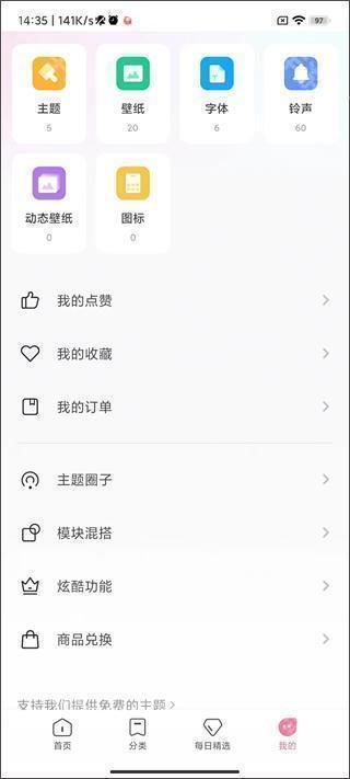 3、该软件内容丰富,包含了壁纸、字体、来电铃声、锁屏样式、应用图标以及桌面小组件样式等内容。