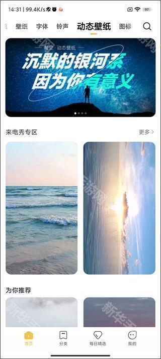 3、可以根据自己的喜好选择最适合的主题此外,它还提供了丰富的高清无水印壁纸,让用户的手机桌面锁屏壁纸更加有趣、个性化。