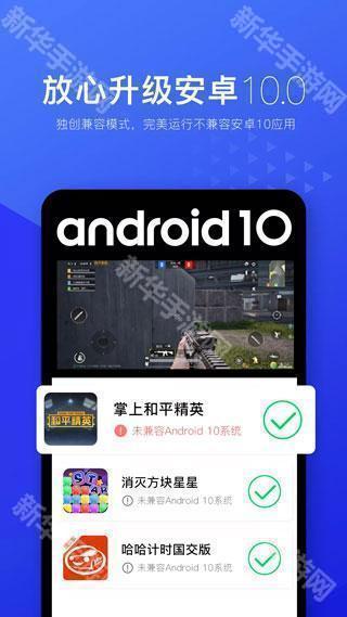 3.放心升级安卓10独创兼容模式,完美运行不兼容安卓10的应用。在安卓10手机上完美运行掌上和平精英。