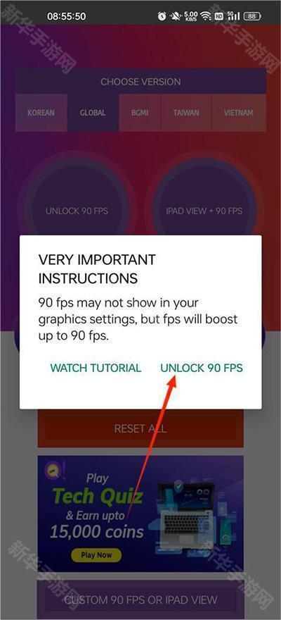5、权限授予后,您可以通过单击解锁 90 FPS 按钮解锁 90 FPS