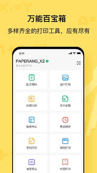 涵盖小学、初中、高中所有科目的题库,提供海量题目和答案。涵盖小学、初中、高中、大学、托福等各个阶段的单词本,满足不同水平的学习需求。在广场上发现更多手账、表情包、原创插图、模板等素材,帮助你实现贴纸自由,不仅是一款可以打印题目试卷的app,你还可以在广场上找到丰富的手账素材哦,一键拍照扫描文档,即可进行内容的提取,快速打印不是问题
