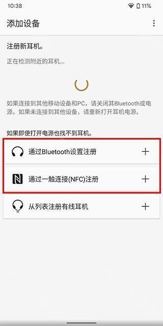2、如果此时打开电源软件检测不到耳机,那么我们选择通过Buletooth设置注册或者下方的一触连接(需要手机支持NFC)手动链接耳机;