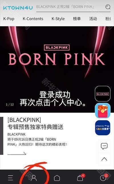 找到KTOWN4U官方网站主页面,选择个人中心。