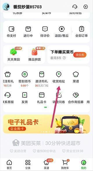 1、打开小象超市app,点击右下角【我的】,然后点击【收货地址】