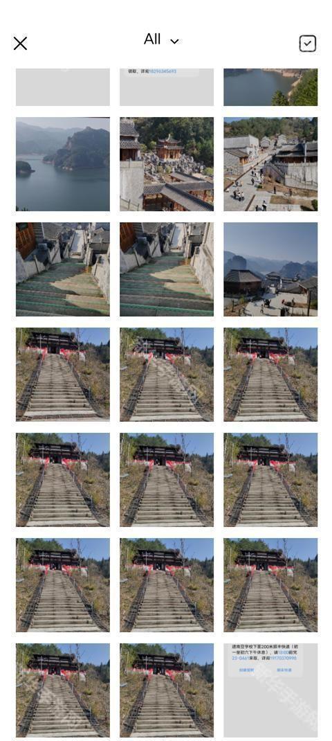 3、在手机中所有的相册中勾选想要导入的图片,点击右上方确定即可