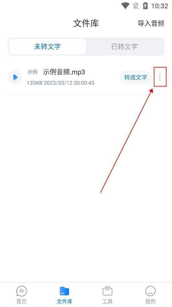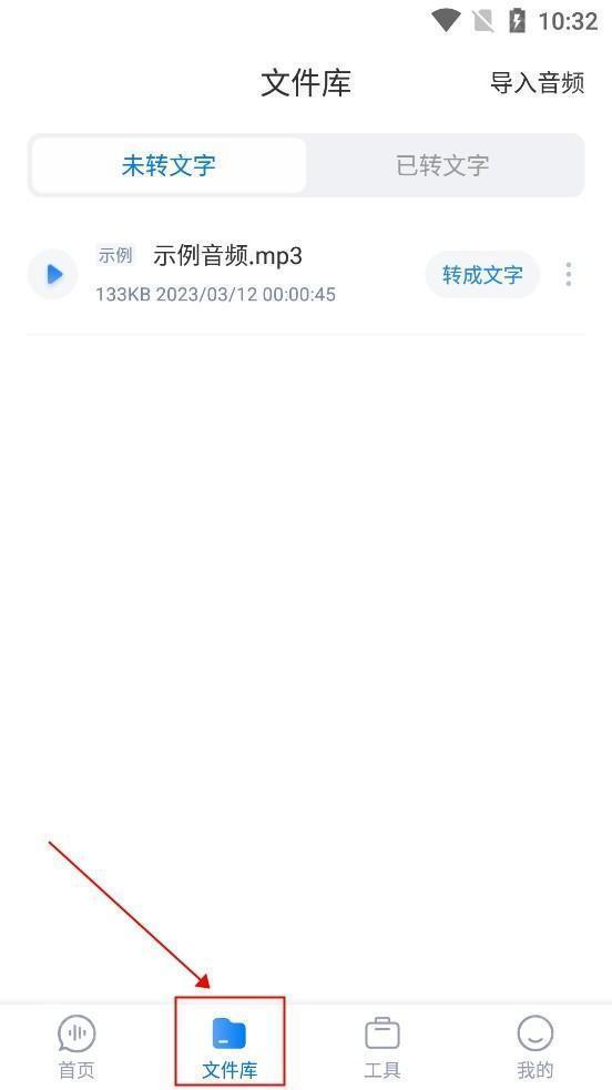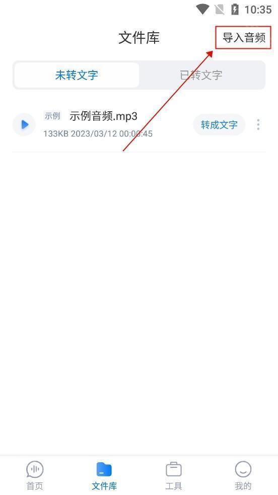 1.在文件库页面,选择“导入音频”。