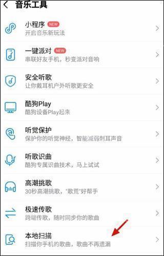 3、在音乐工具页面,点击 本地扫描;