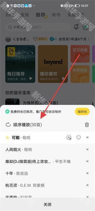 2、在播放页面可点击播放列表按钮,查看顺序播放的歌曲列表,如可能、人间烟火等,方便切换歌曲收听。