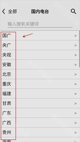 4、即可找到国广、央广、安徽、北京、重庆、福建等各大电台频道