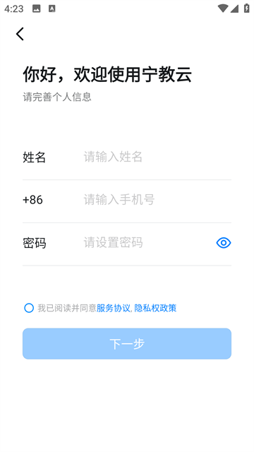4、输入学生学籍及家长信息,同意登录办理宁夏教育资源公共服务平台业务。