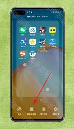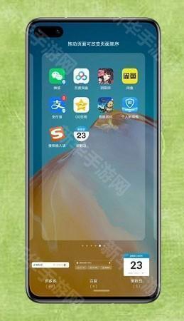 1、首先打开手机桌面控制界面,用手指按住屏幕分别往不同的方向滑动;