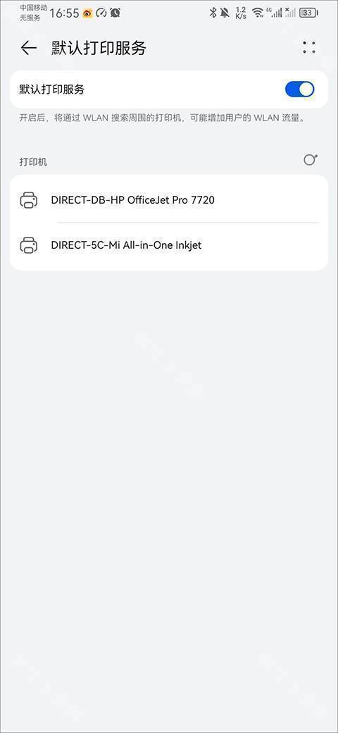 3、将打印机默认打印服务开启后,手机会自动搜索打印机,然后选择打印机进行连接即可