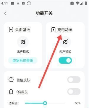 3.这里以“应用皮肤”为例,点击应用皮肤。选择微信或是qq并设置透明度后点击“设为皮肤”