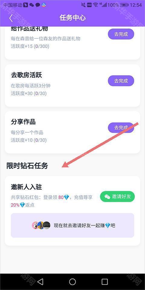 同时用户还可下拉该页面至底部,会有限时钻石任务,用户完成该任务可能直接获得钻石