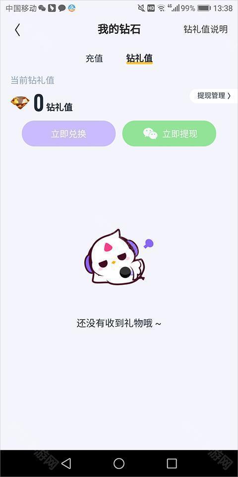 1、用户可以在回森中通过收到的钻石礼物按一定比例转化为钻礼值,钻礼值支持提现。