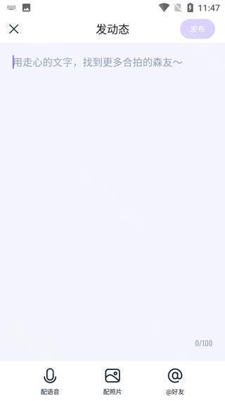 2、填写你要发的文字,你可以自由的进行配音、配图片、以及@好友