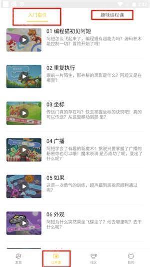 2、在“公开课”页面的“入门指引”里,能够学习编程的一些基础课程;在“趣味编程课”板块,可学习制作简单游戏的编程课程。