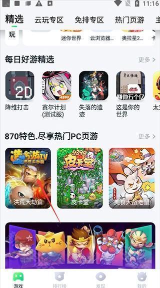 《暮云电脑》这是一款非常好用的手机游戏软件,这款暮云电脑又叫做870游戏盒,而且这款暮云电脑软件里面还内置丰富的云游戏资源,包含各种好玩的手机游戏,多种类型,无论是rpg还是策略、经营等等类型都在这款暮云电脑里面,在暮云电脑里面,用户无需高端配置即可畅玩各种游戏,因为这款暮云电脑能够很好的进行优化保障用户的使用顺畅,享受流畅的游戏体验。喜欢的用户快来下载暮云电脑吧!