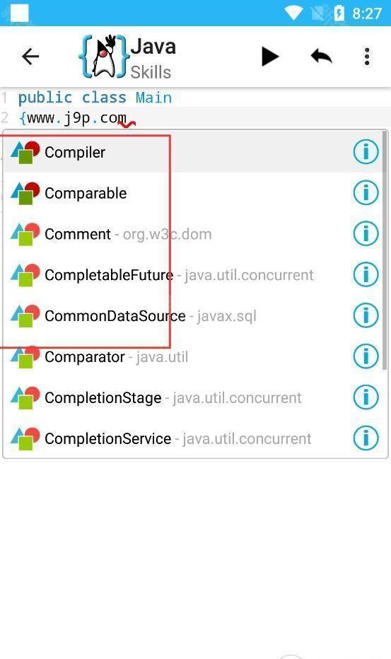2、ava技能学习界面,展示CompilerComparable等类,助用户了解Java类库。