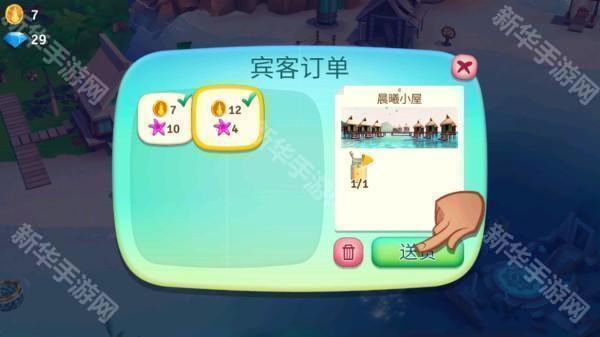 5、可以查看宾客订单,当你拥有客户所需物资时,点击“送货”开始运输