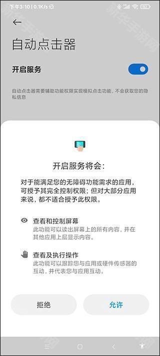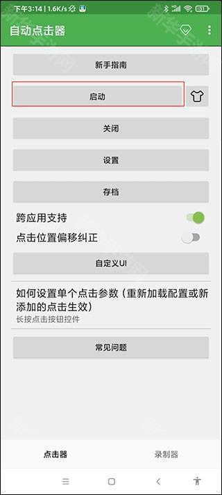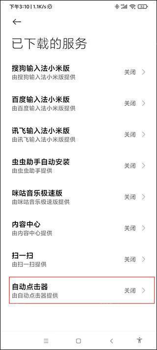 5、找到“自动点击器”,也是默认关闭的,需要开启。