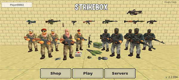 《打击盒沙盒和射击》这是一款射击动作类型的游戏,游戏由“ChaloApps”工作室出品,玩家可以自由构建战场,体验各种类型的枪械战斗,包括手枪、冲锋枪、步枪、狙击步枪和火箭发射器,自由度很高。场景非常开阔,环境也在不断变化。它还模拟了一个相对真实的战场,在那里玩家必须与多个对手作战,你也可以驾驶车辆进行战斗,让整个环境都活动起来,提供最好的射击体验。