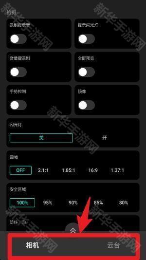 3、在拍摄设置页面,用户可以根据需要开启录制提示音、手势控制等功能,同时还能调整画幅比例与防抖等级。