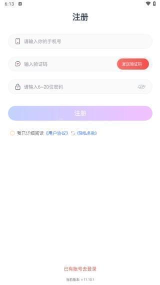 3、注册页面,用户输入手机号和验证码,并设置好密码,就可以注册登录了。