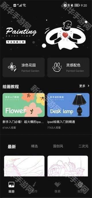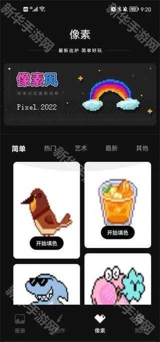 1、在首页画册中可以进行新手学习,以及最新的各种类型图案的填色。