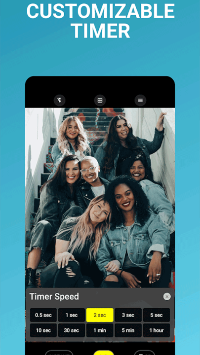 1、简单但功能强大的定时器相机应用程序,无需按下按钮甚至握住设备即可为您和您所爱的人拍照。只需设置您想要的拍摄之间的时间间隔,然后让相机开始拍摄!