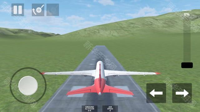 6:进入游戏后,通过虚拟摇杆和按键操控飞机,右侧“THROTTLE”可调节油门控制飞机速度,左右按键控制飞机方向,下方显示“GROUND ALTITUDE(地面高度)”和“AIR SPEED(空速)”等数据。