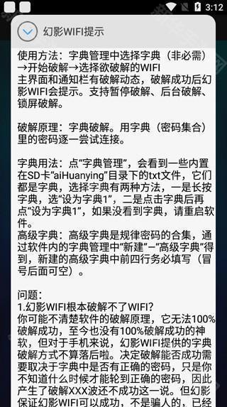 5、还有帮助说明,可以帮助用户更好的破解WiFi。
