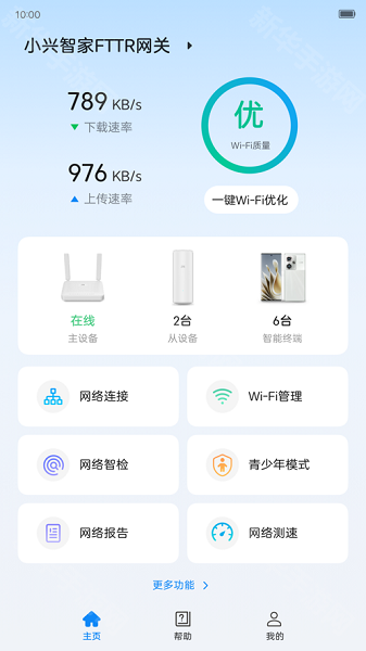 支持多设备管理,路由器设备集成管理,方便用户在家庭网络的不同位置统一控制。内置故障检测工具,能够快速识别并解决常见的网络问题,提升网络稳定性。自动诊断网络问题,并提供解决方案,帮助用户快速解决故障。超级简约的界面设置,清晰的功能排版,第1次使用,也不用担心操作问题。上传以及下载的速率都能够清晰的看到,还会适时的更新。