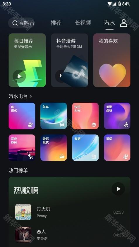 1. 进入首页,这里有短视频、长视频、抖音、汽水音乐等板块内容,能直接切换至汽水音乐。