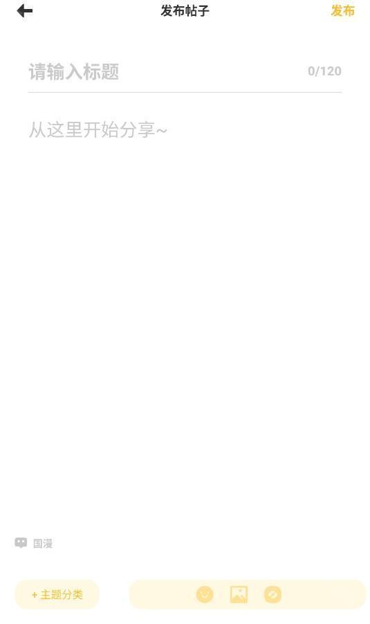 3、输入标题内容,选择主题分类,插入表情图片,点击右上角【发布】即可