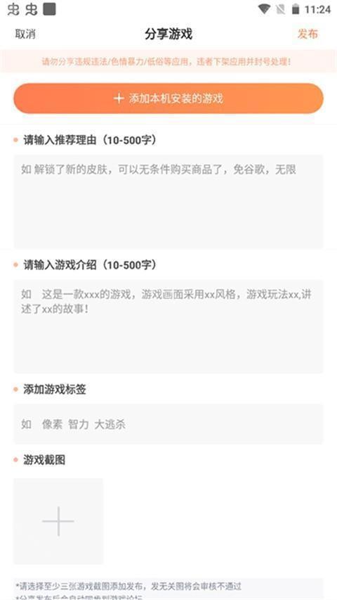 3、然后就填写要发布的游戏信息。之后就可以发布了。