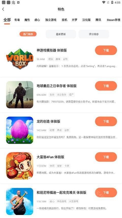 软件中有很多不同版本的游戏资源,满足很多人的需求。