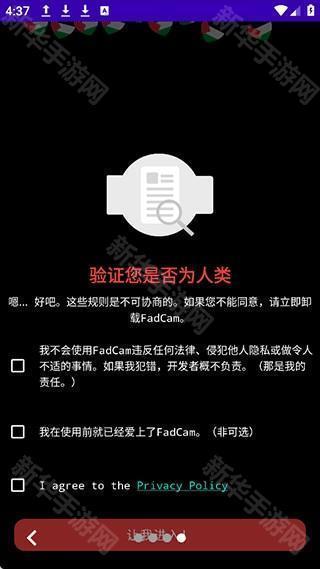 在使用fadcam相机时,用户只需在本页面下载软件,点击同意三项权限后即可进入软件。
