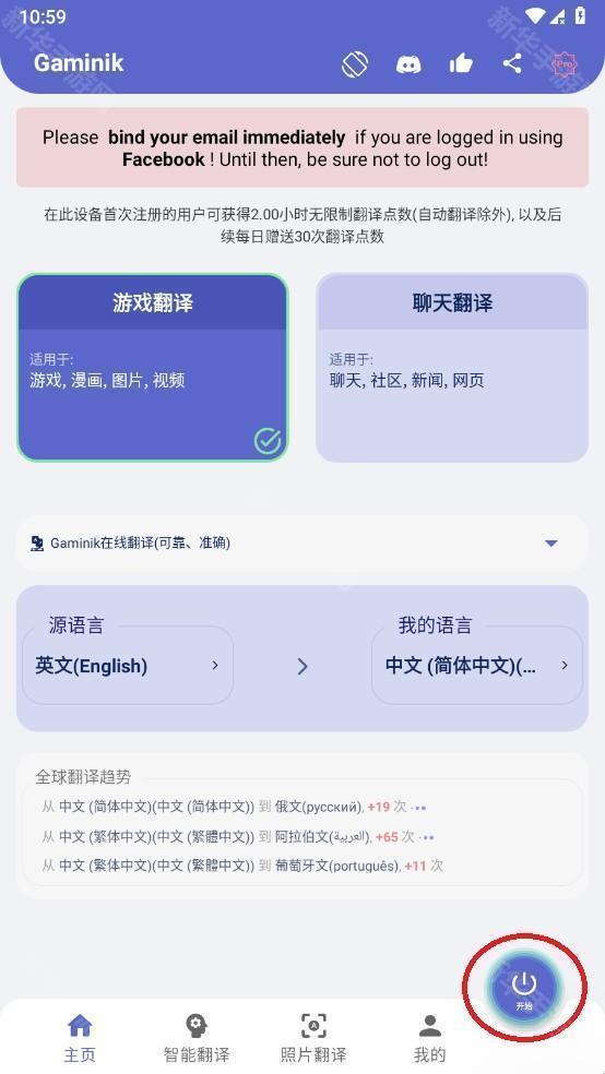 gaminik是一款功能强大的翻译软件,这款软件支持用户使用各种功能去翻译不同的游戏文字、漫画翻译、外国小说等等,每一种都能将各种不同的比如:英语,韩语,日语,西班牙,俄文等等翻译成你需要的中文,更好的享受文字以及漫画带给你的乐趣,不再让语言变成你的享受娱乐的负担,让上手更加轻松简单,对这款软件有需要的用户就来本站下载体验试试吧。