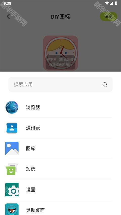 2、然后在diy图标页面内点击选择你想要链接的应用。