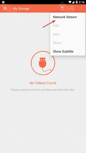 2、不过我们又在线播放模式,所以我们只需要点击右上角的三个点就可以看到下图所示的【network stream】。